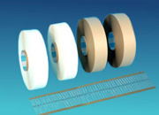 Finished product belting of resistors and secondary belting of automatic plug-in electric components. |